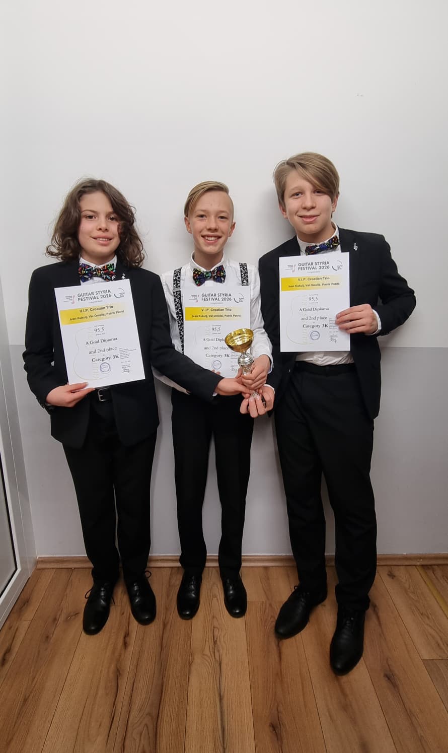 Na Međunarodnom natjecanju Guitar Styria u Grazu, naš gitarski trio u sastavu Val Omelić, Patrik Petrić i Ivan Kukulj ostvario je izvanredan uspjeh osvojivši Zlatnu diplomu i 2. mjesto u 3K kategoriji (komorni sastavi – duo, trio i kvartet)!